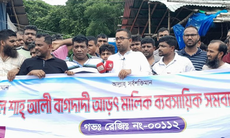 শুক্রবার (২৫ জুলাই) সকাল ১০ টায় শাহ্আলী বাগদাদী মাজার শরিফের পিছনে শহিদ বুদ্ধিজীবী কবর স্থান গেট সংলগ্নে ‘সুলতানুল শাহ্ আলী বাগদাদী আড়ৎ মালিক ব্যবসায়িক সমবায় সমিতি লিমিটেডের আয়োজনে মানববন্ধন ও বিক্ষোভ অনুষ্ঠিত হয়।
