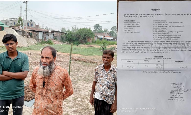 ২১ এপ্রিল ২০২৫ ওই সম্পত্তির দাবিদার দেওয়ান নাহিদ জামান নওগাঁ বিজ্ঞ অতিরিক্ত জেলা ম্যাজিস্ট্রেট আদালতে নালিশি সম্পত্তি নিয়ে একটি মামলা করেন। আদালত ওই সম্পত্তিতে কোনো প্রকার স্থাপনা নির্মাণ না করা এবং মামলা নিষ্পত্তি না হওয়া পর্যন্ত উভয় পক্ষের মধ্যে শান্তি ও শৃঙ্খলা বজায় রাখার জন্য ধারা ১৪৪/১৪৫ ফৌঃকাঃবিঃ ধামইরহাট থানাকে আদেশ দেন। ২ মে ২০২৫ তারিখে ধামইরহাট থানা উভয়পক্ষকে নিজ নিজ অবস্থানে থাকার জন্য নোটিশ দেন। কিন্তু গত মঙ্গলবার আদেশ অমান্য করে প্রতিপক্ষ ইমরান হোসেন সহ কয়েকজন ব্যক্তি ও তাঁর দলবল নিয়ে ওই জমিতে বালু ও জমির চারদিকে সীমানায় বাঁশ পুঁতে কাঁটা তার দিয়ে জমি দখলে নিয়েছেন।