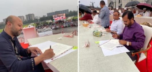 পতাকা ডেস্ক: আজ (শুক্রবার) বিকেলে জাতীয় সংসদ ভবনে অনুষ্ঠিত জুলাই সনদ স্বাক্ষর অনুষ্ঠানে যোগ দিয়েছেন এবি পার্টির নেতৃবৃন্দ। দলের চেয়ারম্যান মজিবুর রহমান মঞ্জু সনদে স্বাক্ষর প্রদানের আগে ও পরে সাংবাদিকদের সাথে কথা বলেন। তিনি তাদের করা প্রশ্নের জবাব প্রদানকালে বলেন, আশাকরি সংশয় ও সংকট কেটে যাবে। ইগো পরিহার করে অন্তর্বর্তী সরকারের আস্থাভাজন ৩ টি রাজনৈতিক দলকে জুলাই সনদ বাস্তবায়নে সহযোগিতার আহ্বান জানান তিনি। জনাব মঞ্জু বলেন; বিএনপি সবচেয়ে বড় দল, তারা দীর্ঘদিন ক্ষমতায় ছিল এবং লম্বা সময় ধরে নির্যাতন নিপীড়ন সয়ে ফ্যাসিবাদের বিরুদ্ধে সংগ্রাম করেছে, তাদের মত অভিজ্ঞ দল দ্বিতীয়টি নেই; এটা তাদের ‘ইগো’।