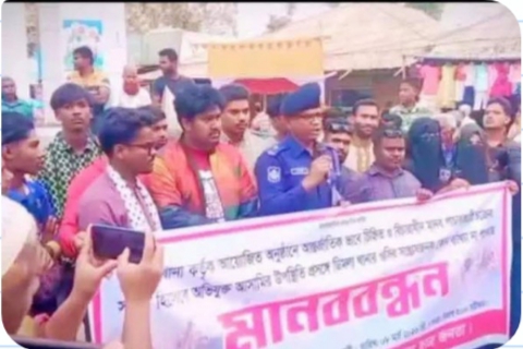 ওসির বিরুদ্ধে মানববন্ধনে ওসি নিজেই অংশ নিয়ে দিলেন অভিযোগের ব্যাখা