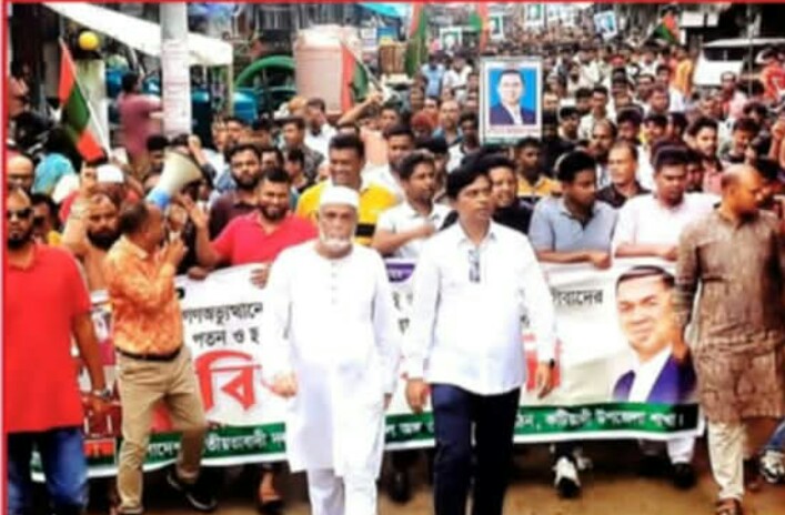রতন ঘোষ, কটিয়াদী প্রতিনিধি : কিশোরগঞ্জের কটিয়াদীতে জুলাই ২০২৪ এর গণঅভ্যুত্থান দিবস উপলক্ষে মিছিলের শহরে পরিণত হয়। ৫ আগস্ট মঙ্গলবার সকাল থেকে দিনভর বিভিন্ন রাজনৈতিক দলের মিছিল সমাবেশে সরগরম হয়ে উঠে কটিয়াদী পৌর সদর এলাকা। উপজেলা বিএনপির সভাপতি, সাধারণ সম্পাদক ও পৌর বিএনপির উদ্যোগে পৃথক পৃথক দলে বিভক্ত হয়ে মিছিল সমাবেশ করতে দেখা যায়। অপরদিকে জামাতে ইসলাম কটিয়াদী উপজেলা শাখা, ইসলামী আন্দোলন ঘটিয়াজি উপজেলা শাখা ও দিবস কি উপলক্ষে পৃথক পৃথক মিছিল ও সমাবেশ করে। কিশোরগঞ্জ জেল বিএনপির সহ-সভাপতি রুহুল আমিন ও উপজেলা বিএনপির সভাপতি তোফাজ্জল হোসেন খানের নেতৃত্বে বিকেল তিনটায় আনন্দ মিছিল কটিয়াদী বাজারের প্রধান প্রধান সড়ক ও বাস স্ট্যান্ড এলাকা প্রদক্ষিণ করে। মিছিলের পূর্বে কটিয়াদী বাসস্ট্যান্ডে একটি সংক্ষিপ্ত সমাবেশ করে। সকালে উপজেলা বিএনপির সাধারণ সম্পাদক আরিফুর রহমান কাঞ্চনের নেতৃত্বে একটি মিছিল কটিয়াদী বাজার প্রদক্ষিণ করে এবং পোস্ট অফিস সংলগ্ন জেলা পরিষদ মার্কেট এলাকায় একটি সমাবেশ করে। কটিয়াদী পৌর বিএনপির সভাপতি আশরাফুল হক দাদন ও সাধারণ সম্পাদক সজল সরকারের উদ্যোগে অপর একটি মিছিল বাজারের বিভিন্ন সড়ক প্রদক্ষিণ করে। তাছাড়া বাংলাদেশ জামাতে ইসলামী, উপজেলা শাখার উদ্যোগে মিছিল ও সমাবেশ অনুষ্ঠিতহয়।তাছাড়া ইসলামী আন্দোলন বাংলাদেশ, কটিয়াদী উপজেলা শাখা ও পৃথক কর্মসূচি পালন করে। সকাল ১১ টায় উপজেলা প্রশাসনের উদ্যোগে জুলাই যোদ্ধাদের সংবর্ধনা প্রদান ও তাদেরকে “মাতৃভূমি অথবা মৃত্যু উত্তরীয়” পরিয়ে দেওয়া হয়।