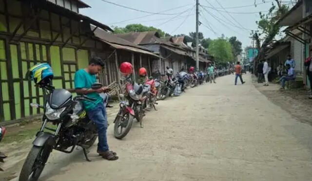 বুধবার সকাল থেকে রাত্র পর্যন্ত কটিয়াদী বাজারের মেসার্স দেবনাথ রাধানাথ রায়ের তেলের দোকানে তীব্র ভিড় দেখা গেছে। লাইনে দাঁড়িয়ে অপেক্ষা করতে দেখা গেছে অনেক মোটরসাইকেল চালককে। মধ্যপ্রাচ্যে যুদ্ধ শুরু হওয়ার পর গত তিন সপ্তাহ ধরে ফিলিং স্টেশন গুলিতে পেট্রোল- অকটেনের তীব্র সংকট দেখা দিয়েছে। জ্বালানি তেলের সংকট নিরসনে প্রশাসনের ভূমিকা জোরদার করার দাবি জানিয়েছেন ভোক্তাগণ। সর জমিনে দেখা যায়, পেট্রোল ও অকটেনের স্বাভাবিক সরবরাহ বন্ধ থাকায় সাধারণ ভোক্তা গনকে চরম ভোগান্তিতে পড়তে হয়েছে। কোথাও সীমিত সরবরাহ এলেও তা দ্রুত শেষ হয়ে যাচ্ছে। ব্যবসায়ী ও চাকরির কাজে যারা নিয়মিত মোটর সাইকেলের ব্যবহার করেন, তারা পড়েছেন বিপাকে। অনেকের পথের মধ্যেই তেল শেষ হয়ে যাওয়ার কারণে মোটরসাইকেল ঠেলে নিয়ে যেতে দেখা গেছে।