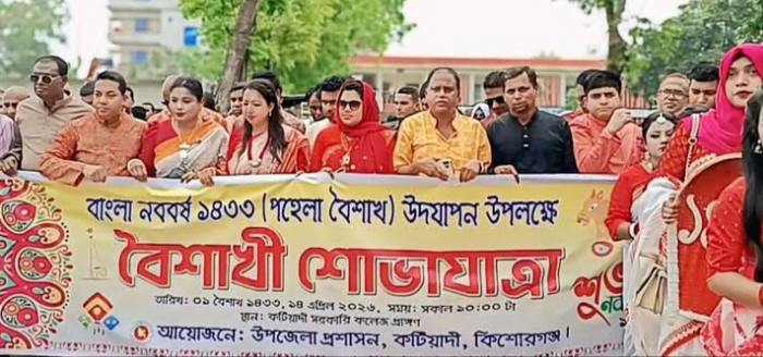 রতন ঘোষ, কটিয়াদী প্রতিনিধি: কিশোরগঞ্জের কটিয়াদীতে বর্ণিল আয়োজনের মধ্য দিয়ে বাংলা নববর্ষ ১৪৩৩ উদযাপন করা হয়েছে।