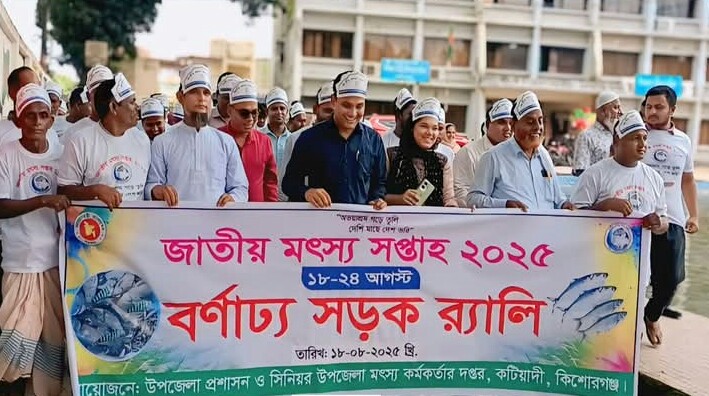 রতন ঘোষ, কটিয়াদী প্রতিনিধি: “অভয় আশ্রম গড়ে তুলি, দেশি মাছে দেশ ভরি” এই প্রতিপাদ্যকে সামনে রেখে কিশোরগঞ্জের কটিয়াদীতে জাতীয় মৎস্য সপ্তাহ ২০২৫ উপলক্ষে এক বর্ণাঢ্য র্যালি,পোনা অবমুক্ত করণ, আলোচনা সভা ও সফল মৎস্য চাষীদের মাঝে ক্রেস্ট বিতরণ করা হয়েছে ।