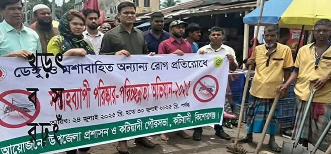 রতন ঘোষ, কটিয়াদী প্রতিনিধি: কিশোরগঞ্জের কটিয়াদী উপজেলা প্রশাসন ও কটিয়াদী পৌরসভা যৌথ আয়োজনে সপ্তাহব্যাপী ডেঙ্গু ও মশাবাহিত অন্যান্য রোগ প্রতিরোধে পরিষ্কার পরিচ্ছন্নতা অভিযানের উদ্বোধন করা হয়েছে।