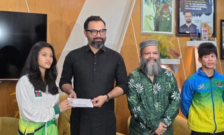 আজ শনিবার (২০ ডিসেম্বর) সকালে রাজধানীর পল্লবীর ইস্টার্ন হাউজিং এলাকায় সৌদি আরবের রিয়াদে অনুষ্ঠিত ইসলামিক সলিডারিটি গেমসে বাংলাদেশের হয়ে রৌপ্য পদক জয়ী খই খই সাই মারমার হাতে আর্থিক অনুদান তুলে দেওয়ার সময় এসব কথা বলেন তিনি। বিএনপির ভারপ্রাপ্ত চেয়ারম্যান তারেক রহমান তার পাশে রয়েছেন।