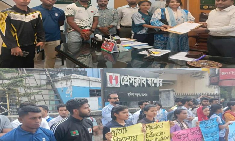 খেলাধুলা ও সংগীত রক্ষায় যশোরে ক্রীড়াবিদদের প্রতিবাদ সমাবেশ