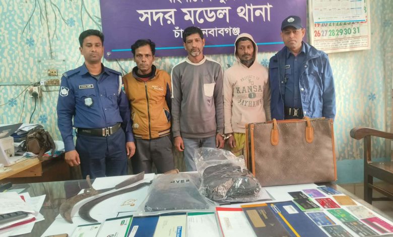 শিবগঞ্জ (চাঁপাইনবাবগঞ্জ) সংবাদদাতা: চাঁপাইনবাবগঞ্জ সদর মডেল থানায় দায়ের করা ছিনতাইয়ের এক মামলায় তিনজন আসামিকে গ্রেপ্তারসহ ছিনতাইকৃত মালামাল উদ্ধার করেছে পুলিশ।