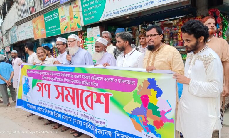 শিবগঞ্জ (চাঁপাইনবাবগঞ্জ) সংবাদদাতা : চাঁপাইনবাবগঞ্জে মেডিকেল কলেজ হাসপাতাল প্রতিষ্ঠার দাবিতে গণ সমাবেশ অনুষ্ঠিত হয়েছে।