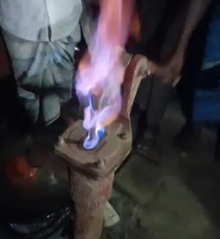 স্থানীয় সূত্রে জানা যায়, স্থানীয় বাসিন্দা আব্দুল মতিন গৃহস্থালির ব্যবহারের জন্য এক মাস আগে তার বসতঘরের পাশে ৬০ ফুট গভীর একটি টিউবওয়েল স্থাপন করেন। টিউবওয়েল স্থাপনের পর থেকেই পানির সঙ্গে এক ধরনের তীব্র গন্ধ পাওয়া যাচ্ছিল। পানি বের হওয়ার সময় বুদ বুদ শব্দ করে। এ কারণে পানি ব্যবহার করতে পারছিল না পরিবারটি। বিষয়টি পরীক্ষা করতে আব্দুল মতিন ও তার পরিবারের সদস্যরা দিয়াশলাই জ্বালালে টিউবওয়েলের মুখে আগুন জ্বলে ওঠে। এ ঘটনার খবর দ্রুত এলাকায় ছড়িয়ে পড়লে ঘটনাস্থলে ভিড় জমায় উৎসুক জনতা। এতে স্থানীয়দের মধ্যে চরম উদ্বেগ ও আতঙ্ক দেখা দিয়েছে।