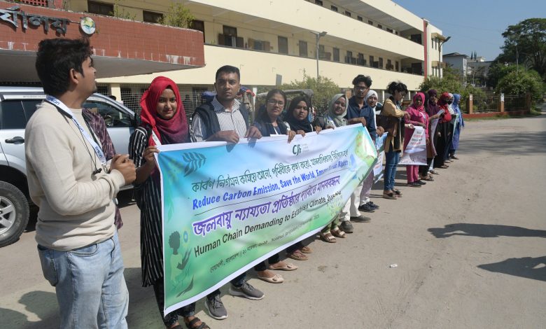 পার্টিসিপেটরি রিসার্চ অ্যান্ড অ্যাকশন নেটওয়ার্ক-প্রান এর আয়োজনে মানববন্ধনে জলবায়ু পরিবর্তনে ক্ষতিগ্রস্ত সম্প্রদায়ের মানুষ, সুশীল সমাজের প্রতিনিধি এবং বিভিন্ন পেশার নাগরিকরা অংশ নেন। তারা জলবায়ু পরিবর্তনের কারণে জীবন, জল, খাদ্য, স্বাস্থ্য ও মর্যাদার মতো মৌলিক অধিকার হরণের প্রতিবাদ জানিয়ে উন্নত দেশগুলোর ঐতিহাসিক দায়িত্ব বিবেচনায় কার্যকর জলবায়ু অর্থায়ন, ক্ষতিপূরণ এবং নির্গমন হ্রাসের জোর দাবি জানান। অংশগ্রহণকারীরা জলবায়ু সংকট মোকাবিলায় কার্যকর পদক্ষেপের আহ্বান জানান।
