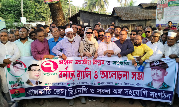 ঝালকাঠি প্রতিনিধি: ঝালকাঠিতে জাতীয় বিপ্লব ও সংহতি দিবসের র্যালি ও পথসভা নিয়ে নানা বিতর্কের সৃষ্টি হয়েছে। দিবসটি উপলক্ষে শুক্রবার (৭ নভেম্বর) বিকেলে ঝালকাঠি প্রেসক্লাবের সামনে জেলা বিএনপি আয়োজিত পথসভায় দলের প্রাথমিক মনোনয়নপ্রাপ্ত সংসদ সদস্য প্রার্থী সাবেক সংসদ সদস্য ইসরাত সুলতানা ইলেন ভুট্টোর বিরুদ্ধে তীব্র সমালোচনা ও বিষোদ্গার করেন জেলা ও কেন্দ্রীয় বিএনপির একাধিক নেতা।