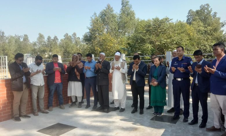 পড়ে (ইউএনও) আশরাফুল আলম রাসেল এর নেতৃত্বে আহমদ নগর বদ্ধ ভূমিতে শহীদদের আত্মার মাগফেরাত কামনা করে দোয়া অনুষ্ঠিত হয়েছে।