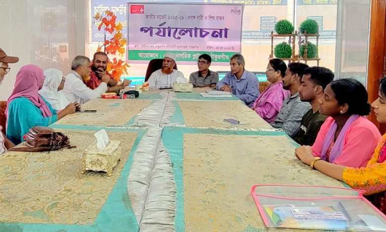 মোঃ ইসলাম, ঠাকুরগাঁও প্রতিনিধি: ২০২৫-২৬ অর্থবছরের জাতীয় বাজেটে নারী ও শিশু বান্ধব নানা বিষয় নিয়ে ঠাকুরগাঁওয়ে আলোচনা সভা অনুষ্ঠিত হয়েছে।