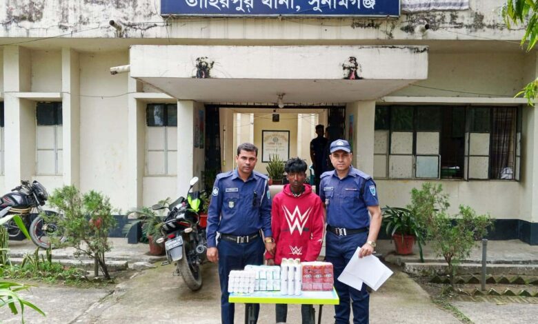 তাহিরপুরে অবৈধ পণ্যসহ আটক ১