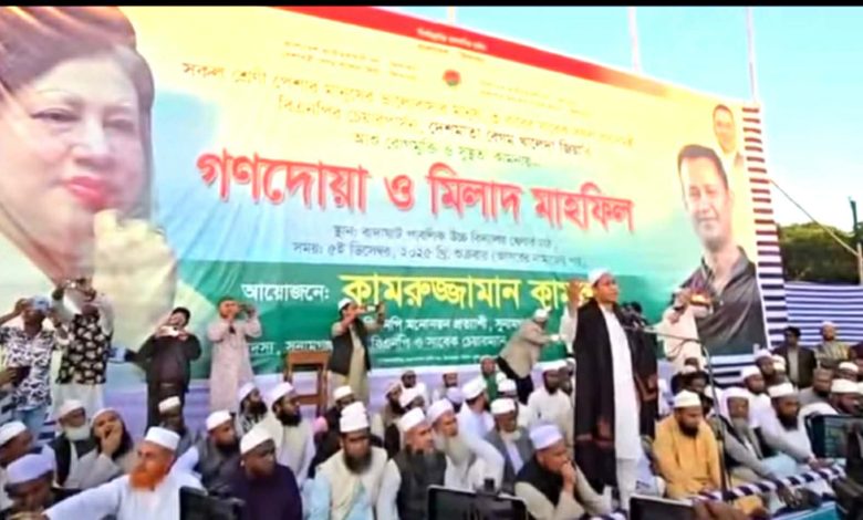 শুক্রবার বিকেলে সুনামগঞ্জের তাহিরপুর উপজেলার বাদাঘাট পাবলিক উচ্চ বিদ্যালয়ের খেলার মাঠে খালেদা জিয়ার সুস্থতা কামনায় এই খতমে কুরআন ও গণদোয়া মাহফিলের আয়োজন করা হয়।