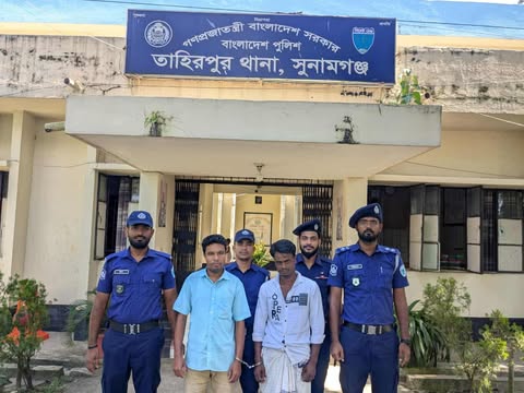 পুলিশ ও স্থানীয় সুত্রে জানা গেছে,উপজেলায় ইজারাবিহীন যাদুকাটা নদী থেকে অবৈধভাবে বালু উত্তোলন করে একটি ষ্টিলবডি নৌকা বোঝাই করে নিয়ে যাওয়ার সময় গোপন সংবাদের ভিত্তিত্বে তাহিরপুর থানা ভারপ্রাপ্ত কর্মকর্তা ওসি দেলোয়ার হোসেন সহ সঙ্গীয় ফোর্স নিয়ে যাদকাটা নদীতে বিশেষ অভিযান পরিচালনা করে। এ সময় একটি ষ্টীল বডি নৌকার ৪০০ ঘনফুট বালি সহ উপজেলার বাদাঘাট ইউনিয়নের কোনাটছড়া গ্রামের মৃত নুর ইসলামের ছেলে আব্দুল কাদির(৪০) ও সোহালা গ্রামের মোঃ আলা উদ্দিন এর ছেলে মোঃ আলী হোসেন(২৯) কে গ্রেফতার করে পুলিশ। এঘটনায় তাহিরপুর থানায় বালুমহাল ও মাটি ব্যবস্থাপনা আইনে মামলা দায়ের করে আটককৃতদের সকালে আদালতে পাঠানো হয়েছে।