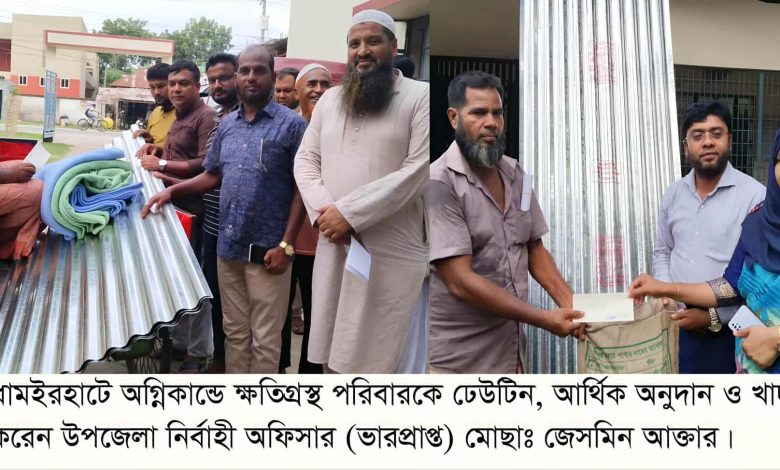 আবুল বয়ান,ধামইরহাট (নওগাঁ) প্রতিনিধি: ধামইরহাটে অগ্নিকান্ডে ক্ষতিগ্রস্থ পরিবারের মাঝে ঢেউটিন, টাকার চেক ও খাদ্যদ্রব্য বিতরণ করা হয়েছে।