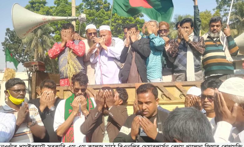 এ সময় তাদের প্রিয় নেত্রীর রোগমুক্তি কামনা করে খোলা আকাশের নিচে দু’হাত তুলে মোনাজাত করেন। মাওলানা নুরুজ্জামান হোসেনের পরিচালনায় দোয়া মোনাজাতে অংশ নেন উপজেলা বিএনপি’র সভাপতি এম এ ওয়াদুদ, সাধারণ সম্পাদক আলহাজ্ব মো. হানজালা, সাংগঠনিক সম্পাদক শামীম কবির মিল্টন, জেলা যুবদলের আহবায়ক কমিটির সদস্য জাহাঙ্গীর আলম লিটন, পৌর বিএনপি’র সভাপতি শহিদুর রহমান সরকার,সাধারণ সম্পাদক আনারুল ইসলাম, সাংগঠনিক সম্পাদক আব্দুর রহমান মীর, সাবেক সাংগঠনিক মোস্তাফিজুর রহমান, যুবদল নেতা রুবেল হোসেন রতন, মুনসুর আলী, ছাত্রদলের যুগ্ম আহবায়ক ওয়াসিফ আরাফাত অভি প্রমুখসহ ৮টি ইউনিয়ন ও পৌরসভার সকল স্তরের নেতাকর্মী ও সমর্থকবৃন্দ উপস্থিত ছিলেন।