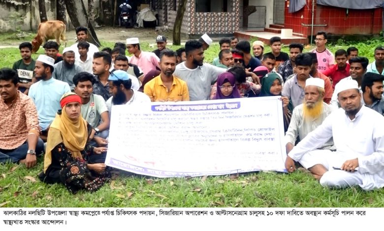 মো:শাহাদাত হোসেন মনু,ঝালকাঠি: নলছিটি উপজেলা স্বাস্থ্য কমপ্লেক্সে পর্যাপ্ত চিকিৎসক পদায়ন, সিজারিয়ান অপারেশন ও আল্টাসনোগ্রাম চালুসহ ১০ দফা দাবিতে অবস্থান কর্মসূচি পালন করা হয়েছে। সোমবার সকালে স্বাস্থ্য কমপ্লেক্স চত্ত¡রে নলছিটি স্বাস্থ্যখাত সংস্কার আন্দোলনের ব্যানারে এ কর্মসূচি পালন করা হয়। এতে নলছিটির বিভিন্ন শ্রেণি পেশার মানুষ অংশ নেয়। সকাল ১০টা থেকে বেলা ১টা পর্যন্ত পালন টানা তিন ঘণ্টা এ কর্মসূচি পালন করা হয়। এ সময় স্বাস্থ্য সেবার মান উন্নয়ন, সিন্ডিকেট বন্ধ ও পর্যাপ্ত ওষুধ সরবরাহের দাবি জানিয়ে নানা শ্লোগান দেওয়া হয়।
