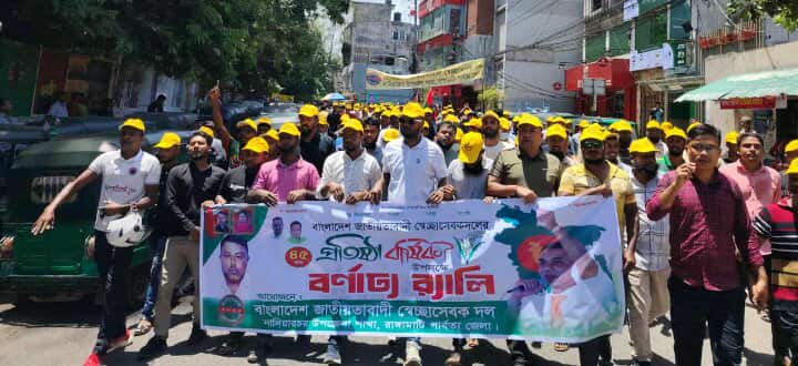 রাঙামাটি প্রতিনিধি: বাংলাদেশ জাতীয়তাবাদী স্বেচ্ছাসেবক দলের ৪৫তম প্রতিষ্ঠাবার্ষিকী উপলক্ষে রাঙামাটির নানিয়ারচরে বিশাল মিছিল অনুষ্ঠিত হয়েছে। মঙ্গলবার সকালে উপজেলা স্বেচ্ছাসেবক দলের আহ্বায়ক বেলাল হোসাইন এর নেতৃত্বে দলীয় নেতাকর্মীরা এক বর্ণাঢ্য মিছিল বের করে।