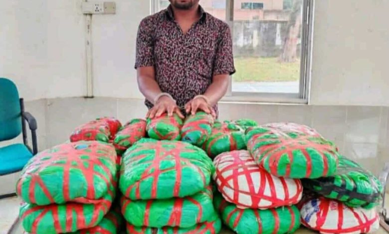 মাদকদ্রব্য নিয়ন্ত্রণ অধিদপ্তর সূত্রে জানা যায়, গোপন সংবাদের ভিত্তিতে ভোরে খড়িয়াপাড়া এলাকায় বিশেষ অভিযান পরিচালনা করে অধিদপ্তরের একটি দল। এসময় আনোয়ার হোসেনের কাছ থেকে ২১ কেজি গাঁজা উদ্ধার করা হয় এবং তাকে ঘটনাস্থল থেকে আটক করা হয়।
