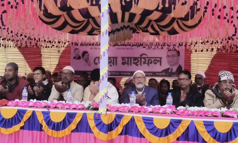 উপজেলা কৃষক দলের সাংগঠনিক সম্পাদক সাবেক যুগ্ম আহবায়ক জুম্মা রশিদের সঞ্চালনায় দোয়া মাহফিলে প্রধান অতিথি হিসেবে উপস্থিত থেকে বক্তব্য দেন নওগাঁ-১ আসনে বিএনপির মনোনীত পদপ্রার্থী ও নিয়ামতপুর উপজেলা বিএনপির সাধারণ সম্পাদক মোস্তাফিজুর রহমান।