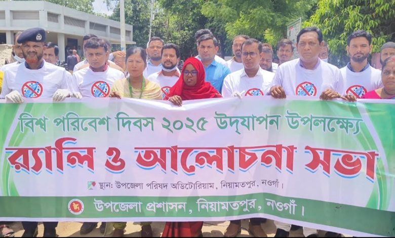 নিয়ামতপুর (নওগাঁ) প্রতিনিধি: “প্লাস্টিক দূষণ আর নয়-বন্ধ করার এখনই সময়” এই প্রতিপাদ্য সামনে রেখে নওগাঁর নিয়ামতপুরে বিশ্ব পরিবেশ দিবস পালন করা হয়েছে।