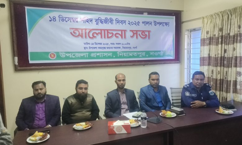 নিয়ামতপুর (নওগাঁ) প্রতিনিধি: নিয়ামতপুরে শহীদ বুদ্ধিজীবী দিবস পালিত হয়েছে। রবিবার (১৪ ডিসেম্বর) সকালে দিবসটি উপলক্ষে উপজেলা পরিষদ সভাকক্ষে আলোচনা সভা অনুষ্ঠিত হয়।