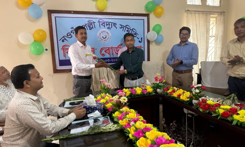গতকাল সোমবার (৯ মার্চ) নওগাঁ পল্লী বিদ্যুৎ সমিতির হলরুমে আয়োজিত সংক্ষিপ্ত এক অনুষ্ঠানে নবনির্বাচিতদের অভিনন্দন জানান সমিতির জেনারেল ম্যানেজার (জিএম), এজিএমসহ বিভিন্ন পর্যায়ের কর্মকর্তারা।