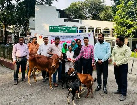 নীলফামারী প্রতিনিধি: নীলফামারীতে তৃতীয় লিঙ্গের (হিজড়া) দুইজন মানুষকে আত্মকর্মসংস্থানের লক্ষ্যে গাই-বাছুর ও ছাগল প্রদান করেছে জেলা পরিষদ। মঙ্গলবার (৩ সেপ্টেম্বর) দুপুরে জেলা পরিষদ চত্বরে আনুষ্ঠানিকভাবে তাদের হাতে এ সহায়তা তুলে দেওয়া হয়। প্রত্যেকে একটি করে গাই-বাছুর ও তিনটি করে ছাগল পান।