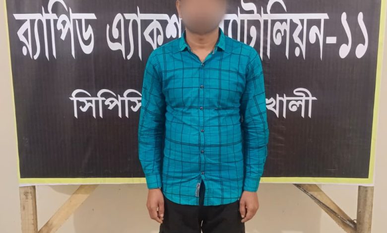 মঙ্গলবার (১৩ জানুয়ারি) দুপুরে র‍্যাব-১১ (সিপিসি-৩) নোয়াখালী কার্যালয়ের কোম্পানি কামান্ডার অতিরিক্ত পুলিশ সুপার মো. মুহিত কবীর সেরনিয়াবাত বিষয়টি নিশ্চিত করেন। এর আগে, গতকাল সোমবার বিকেলে সাড়ে ৫টার দিকে গোপন সংবাদের ভিত্তিতে র‍্যাব-১১ (সিপিসি-৩) নোয়াখালী ও র‍্যাব-৭ (সিপিএসসি) পতেঙ্গা, চট্টগ্রামের যৌথ অভিযানে সুধারাম মডেল থানা এলাকা থেকে তাকে গ্রেপ্তার করা হয়।