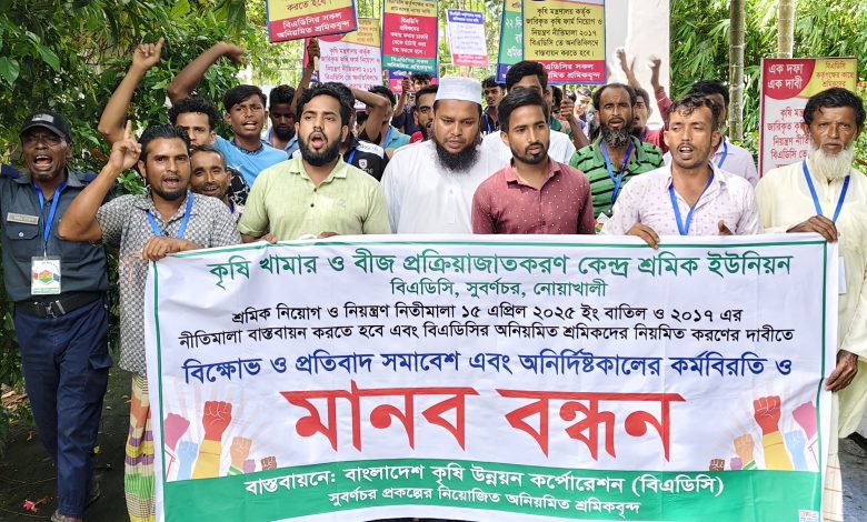 নোয়াখালীতে বিএডিসি শ্রমিকদের বিক্ষোভ-কর্মবিরতি
