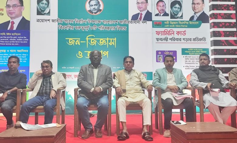 নোয়াখালী প্রতিনিধি: নোয়াখালীতে ত্রয়োদশ জাতীয় সংসদ নির্বাচনকে সামনে রেখে বিএনপির ঘোষিত ৮ পরিকল্পনা বাস্তবায়ন, জন-জিজ্ঞাসা ও আলাপ বিষয়ক আলোচনা সভা অনুষ্ঠিত হয়েছে।