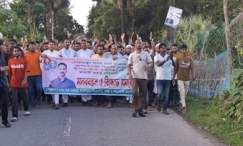নোয়াখালী প্রতিনিধি: নোয়াখালীর বেগমগঞ্জের বিজয় হত্যা মামলায় কোম্পানীগঞ্জ উপজেলার চরএলাহী ইউনিয়ন বিএনপি নেতা ইসমাঈল তোতাকে ষড়যন্ত্রমূলক আসামি করার প্রতিবাদে মানববন্ধন ও বিক্ষোভ মিছিল করেছে স্থানীয় বিএনপি, অঙ্গ ও সহযোগী সংগঠনের নেতাকর্মী এবং স্থানীয় বাসিন্দারা।