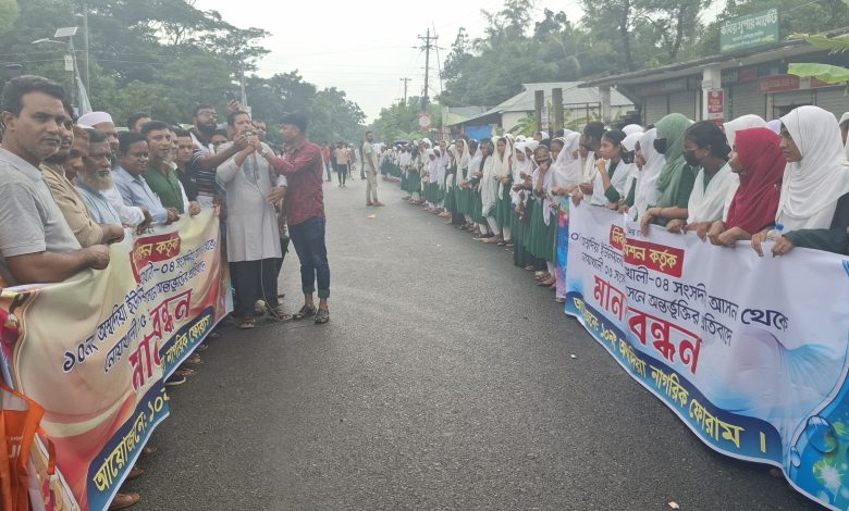 নোয়াখালী-৪ আসন থেকে দুটি ইউনিয়ন বাদ দেওয়ার প্রতিবাদে বিক্ষোভ