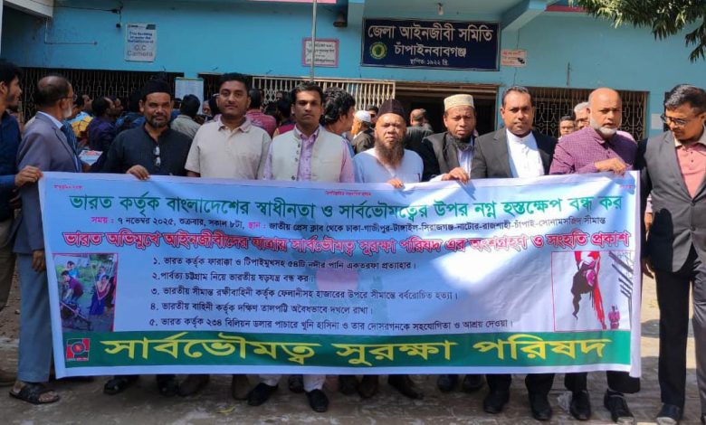 প্রেসবিজ্ঞপ্তি: আজ ৮ নভেম্বর শনিবার চাঁপাইনবয়াবগঞ্জ শহরের নবাবগঞ্জ সরকারি কলেজের সামনে “ভয়েস অব ল’ইয়ার্স বাংলাদেশ” এর লংমার্চ থেকে পার্বত্য চট্টগ্রাম নিয়ে ভারতীয় ষড়যন্ত্রের কঠিন জবাব দেওয়ার হুশিয়ারী দিয়েছে সার্বভৌমত্ব সুরক্ষা পরিষদ এর প্রধান সমন্বয়ক মোঃ মোস্তফা আল ইহযায।