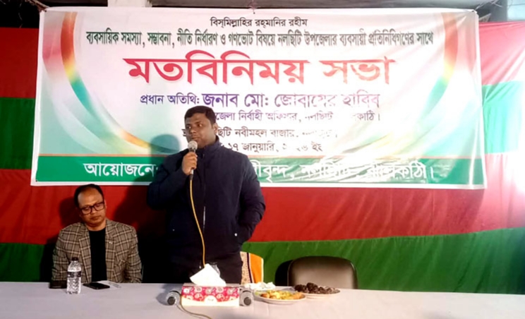 মো.শাহাদাত হোসেন মনু,ঝালকাঠি: নলছিটি উপজেলা নির্বাহী কর্মকর্তা ও পৌর প্রশাসক মো: জোবায়ের হাবিব বলেছেন, “আমরা বাংলাদেশে নতুন করে কোন ফ্যাসিজম কায়েম হউক তা চাই না। আসন্ন সংসদ নির্বাচন দেশের গণতন্ত্রের জন্য অত্যন্ত গুরুত্বপূর্ণ। ত্রয়োদশ জাতীয় সংসদ নির্বাচন যাতে সম্পূর্ণভাবে স্বচ্ছ ও নিরপেক্ষ হয়, তা নিশ্চিত করতে প্রশাসন বদ্ধপরিকর। প্রতিটি ভোটকেন্দ্রের নিরাপত্তা নিশ্চিত করা হবে এবং কোনো প্রকার শক্তিপ্রয়োাগ বা প্রভাব খাটানোর সুযোগ দেওয়া হবে না।” ঝালকাঠির নলছিটিতে ব্যবসায়িক সমস্যা, সম্ভাবনা, নীতি নির্ধারণ ও গণভোট বিষয়ে ব্যবসায়িদের সঙ্গে মত বিনিময় সভায় প্রধান অতিথির বক্তব্যে তিনি এসব কথা বলেন।