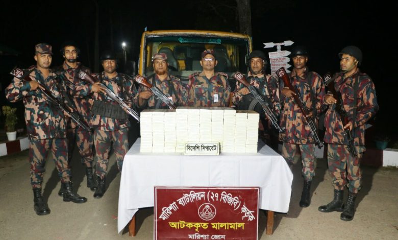 বাঘাইছড়ি প্রতিনিধি: রাঙ্গামাটির বাঘাইছড়ি উপজেলার খেদারমারা ইউনিয়নের নলবনিয়া এলাকায় গোপন সংবাদের ভিত্তিতে অভিযান চালিয়ে ১৪৫০ প্যাকেট ১৪৫ কার্টুন ভারতীয় সিগারেট সহ ঢাকা মেট্রো-ন-১৫৯৩৮২ নাম্বারের একটি মিনি ট্রাক জব্দ করে ২৭ বিজিবি মারিশ্যা জোন । শনিবার রাত ১০ ঘটিকায় ২৭ বিজিবি মারিশ্যা জোনের কমান্ডার লেঃ কর্নেল জাহিদুল ইসলাম জাহিদ এর নির্দেশে মারিশ্যা জোনের সহকারী পরিচালক এডি মো: হাফিজুর রহমানের নেতৃত্বে অভিযান চালিয়ে এসব সিগারেট ও ট্রাক পরিত্যক্ত অবস্থায় আটক করে। অভিযান টের পেয়ে ট্রাক চালক সিগারেট ফেলে পালিয়ে যায়। বিজিবি জানায় আটককৃত এসব মালামালের আনুমানিক মূল্য ৩০ লাখ টাকা। বিজিবির জোন কমান্ডার লে: কর্নেল মো: জাহিদুল ইসলাম জাহিদ অভিযানের বিষয়টি নিশ্চিত করে বলেন মারিশ্যা জোন অবৈধ চোরাচালান ঠেকাতে বদ্ধপরিকর। তাই চোরাচালান প্রতিরোধে এধরণের অভিযান নিয়মিত চলবে।