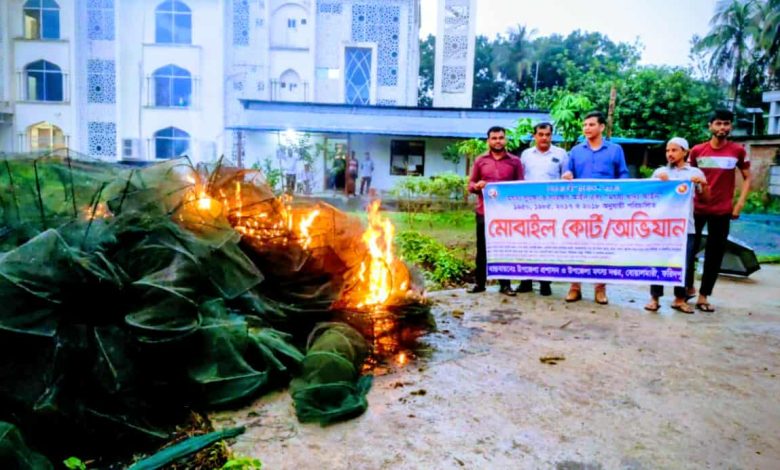 বোয়ালমারীতে চায়না দুয়ারী জাল ধ্বংস