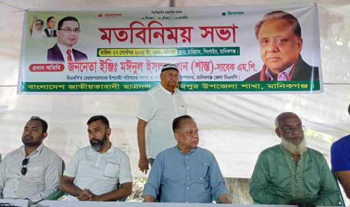 মানিকগঞ্জ প্রতিনিধি: আসন্ন ত্রয়োদশ জাতীয় সংসদ সদস্য নির্বাচনকে সামনে রেখে মানিকগঞ্জ-২ আসনের সাবেক সংসদ সদস্য ও বিএনপির চেয়ারপারসন উপদেষ্টা কাউন্সিলের সদস্য- জননেতা ইঞ্জিনিয়ার মঈনুল ইসলাম খান শান্ত নির্বাচনী প্রচারণা কর্মসূচি বাস্তবায়নের লক্ষে হরিরামপুর উপজেলা ছাত্রদলের মতবিনিময় সভা অনুষ্ঠিত হয়েছে।