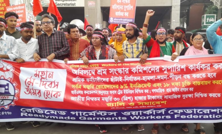 আজ মহান মে দিবস ২০২৫ উপলক্ষে সকাল ১০টায়, জাতীয় প্রেসক্লাবের সামনে রেডিমেড গার্মেন্টস ওয়ার্কার্স ফেডারেশন (RGWF) উদ্যােগে আন্তর্জাতিক শ্রমিক আন্দোলনে শহীদদের প্রতি শ্রদ্ধা জানিয়ে সমাবেশ ও র্যালি অনুষ্ঠিত হয়।