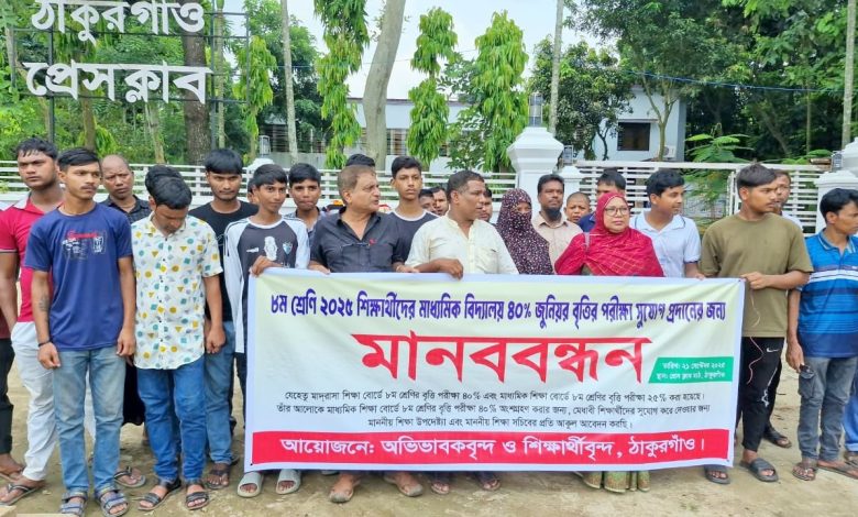 মাদ্রাসা ও মাধ্যমিকে বৃত্তির হার সমপরিমান করার দাবীতে ঠাকুরগাঁওয়ে মানববন্ধন