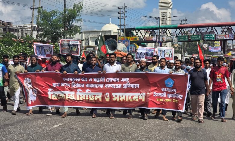 বাংলাদেশ ইসলামী ছাত্রশিবির ঢাকা জেলা উত্তরের উদ্যোগে ছাত্রদলের উগ্র ও সন্ত্রাসী স্লোগান এবং ছাত্রসংসদ নির্বাচন বানচালের ষড়যন্ত্রের প্রতিবাদে বিক্ষোভ মিছিল পরবর্তী সমাবেশে সঞ্চালনা করেন ছাত্রশিবির ঢাকা জেলা উত্তর শাখার সেক্রেটারি আলমগীর হোসেন রাকিব। এতে বিভিন্ন ইউনিটের প্রায় পাঁচ শতাধিক নেতাকর্মী বিক্ষোভ মিছিলে অংশ নেয়।