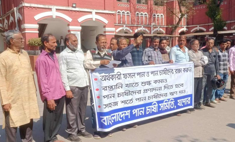 স্বীকৃতি বিশ্বাস, যশোর: যশোরে অর্থকারী ফসল পান ও পান চাষিদের রক্ষার দাবিতে মিছিল ও স্মারকলিপি প্রদান করা হয়েছে।