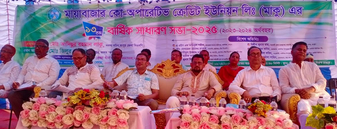 রতন রায়হান, রংপুর: রংপুরের কাউনিয়া উপজেলাধীন হারাগাছ পৌরসভা এলাকায় অনুষ্ঠিত হয়েছে মাকু’র (মায়াবাজার কো-অপারেটিভ ক্রেডিট ইউনিয়ন) মাকু’র “১৩তম” বার্ষিক সাধারণ সভা। শুক্রবার, ৯ মে ২০২৫, বিকাল ৪টায় এ সভা অনুষ্ঠিত হয়। উক্ত অনুষ্ঠানে প্রধান অতিথি হিসেবে উপস্থিত ছিলেন মোঃ আনিসুর রহমান লাকু, সদস্য সচিব, রংপুর জেলা বিএনপি। প্রধান আলোচকের দায়িত্ব পালন করেন মোঃ জিলুর রহমান, ডিরেক্টর “ক” অঞ্চল। অনুষ্ঠানের সার্বিক তত্ত্বাবধানে ছিলেন মাকু’র প্রধান নির্বাহী মোঃ আলিমুল রেজা খাঁন জুয়েল এবং সভায় সভাপতিত্ব করেন মোছাঃ রঞ্জনা বেগম, চেয়ারম্যান, মাকু।