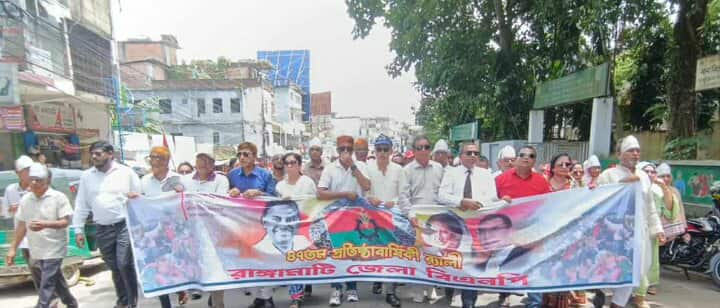 কামরুল ইসলাম, রাঙামাটি প্রতিনিধি: বাংলাদেশ জাতীয়তাবাদী দল (বিএনপি)-এর ৪৭তম প্রতিষ্ঠাবার্ষিকী উপলক্ষে রাঙামাটিতে বর্ণাঢ্য র্যালি ও সমাবেশ অনুষ্ঠিত হয়েছে। সোমবার (১ সেপ্টেম্বর) সকালে রাঙামাটি পৌরসভা প্রাঙ্গণে জেলা বিএনপির উদ্যোগে এ আয়োজন হয়।