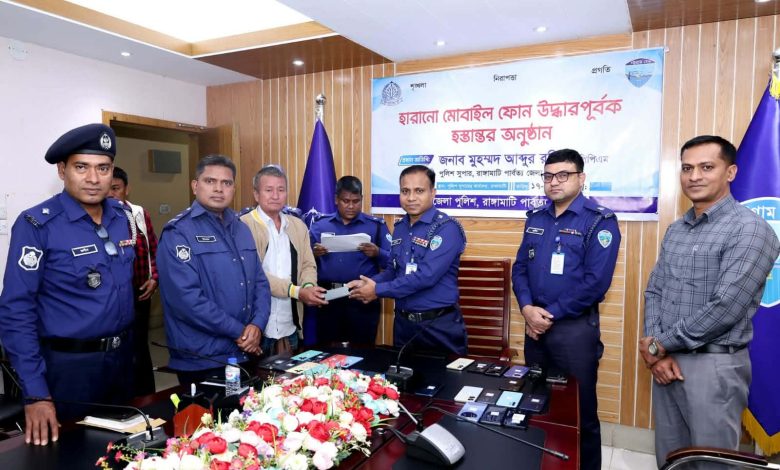 রাঙ্গামাটিতে উদ্ধার হওয়া মোবাইল ফেরত দিলো পুলিশ