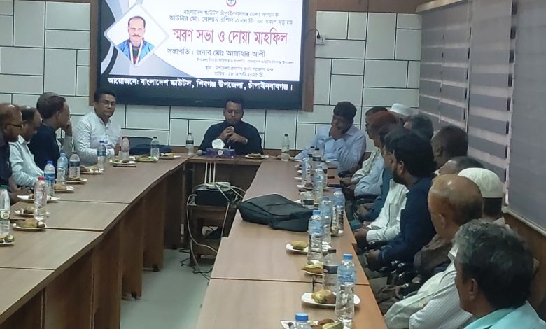 শিবগঞ্জ(চাঁপাইনবাবগঞ্জ)সংবাদদাতা: চাঁপাইনবাবগঞ্জ জেলা স্কাউটসের সদ্য প্রয়াত সম্পাদক স্কাউটার গোলাম রশিদের স্মরণে, সভা ও দোয়া মাহফিল অনুষ্ঠিত হয়েছে। শিবগঞ্জ উপজেলা পরিষদ মিলনায়তনে বৃহস্পতিবার দুপুরে শিবগঞ্জ উপজেলা স্কাউটস এ আয়োজন করে।