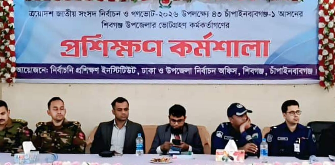 শিবগঞ্জ (চাঁপাইনবাবগঞ্জ) সংবাদদাতা: শিবগঞ্জে আসন্ন ত্রয়োদশ জাতীয় সংসদ নির্বাচন ও গণভোট–২০২৬ উপলক্ষে চাঁপাইনবাবগঞ্জ-১ অসনের শিবগঞ্জ উপজেলার ভোটগ্রহণকারী কর্মকর্তাদের জন্য প্রশিক্ষণ কর্মশালা অনুষ্ঠিত হয়েছে।